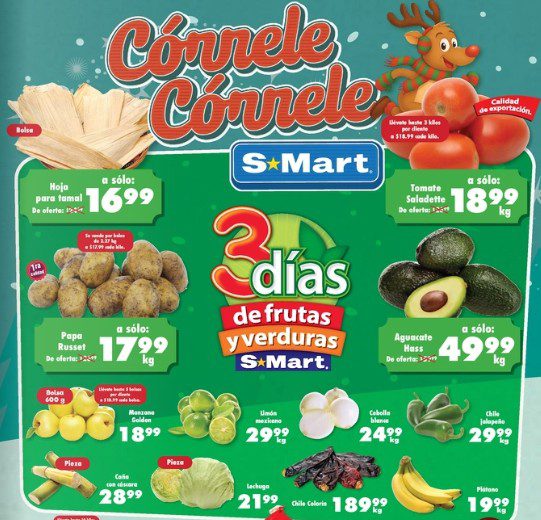 Ya salió el folleto “3 Días de Frutas y Verduras”, con las ofertas que S-Mart está ofreciendo del 23 al 25 de diciembre de 2025 o hasta agotar existencias: