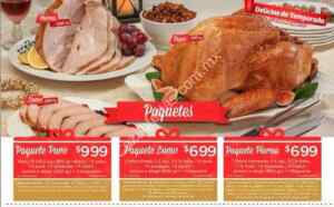 Paquete pavo a sólo $999.00 incluye: pavo de 5.5 o 6.5 kilos, 950 gramos de relleno, 1 litro de salsa, 1 litro de puré, 1 litro de ensalada, 1 litro de pasta, postre a elegir y 2 baguettes