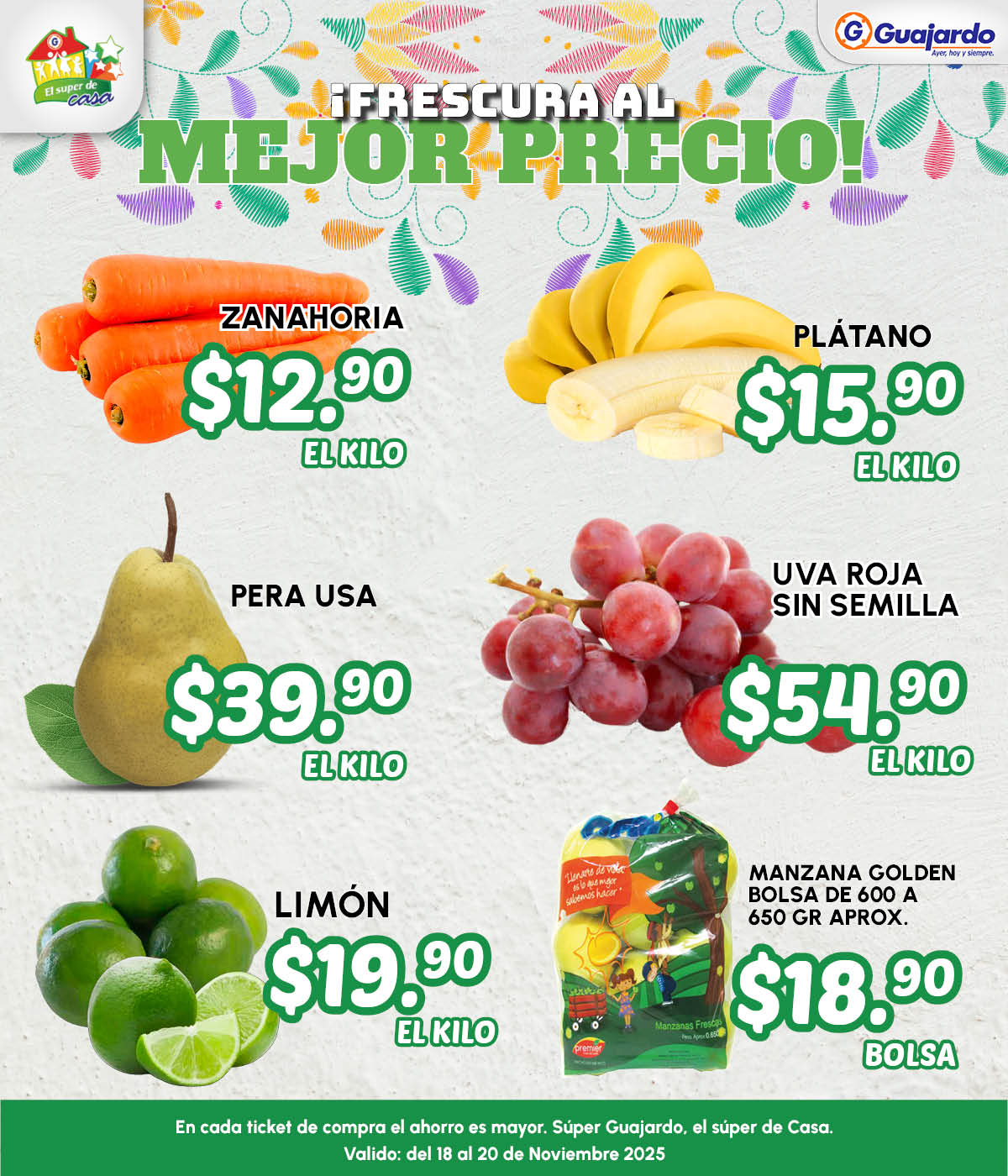 Ya salió el folleto Súper Ofertas con las ofertas de Frutas, Verduras y Carnes que Súper Guajardo tendrá disponibles del 18 al 20 de noviembre de 2025 y son estas: