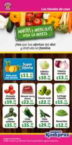 Sólo por hoy y mañana (martes 21 y miércoles 22 de marzo de 2023) o hasta agotar existencias, estarán disponibles las ofertas de Frutas y Verduras del folleto “Martes y Miércoles desde la Huerta” que Super Kompras está ofreciendo: