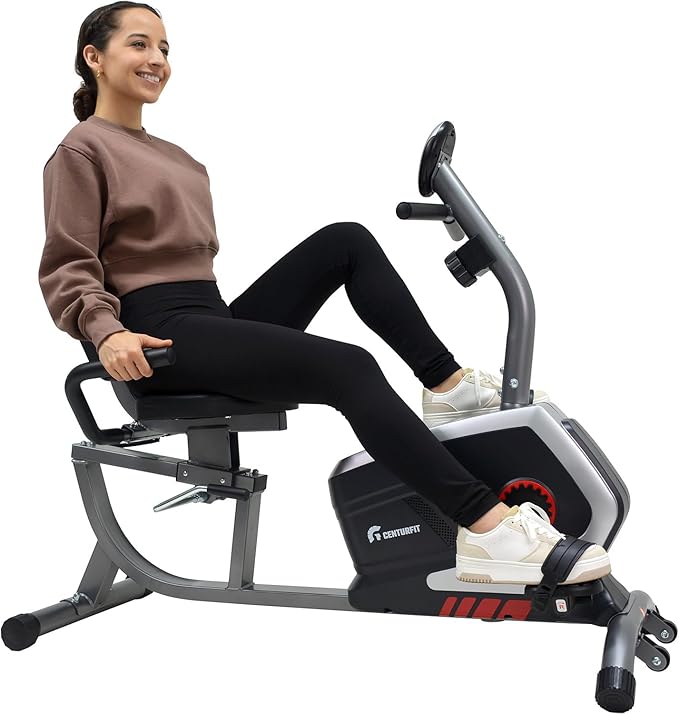 CENTURFIT Bicicleta Fija Horizontal Reclinada Magnética 8 Niveles Pantalla Monitor Ajuste de Asiento Soporta hasta 140 Kg...