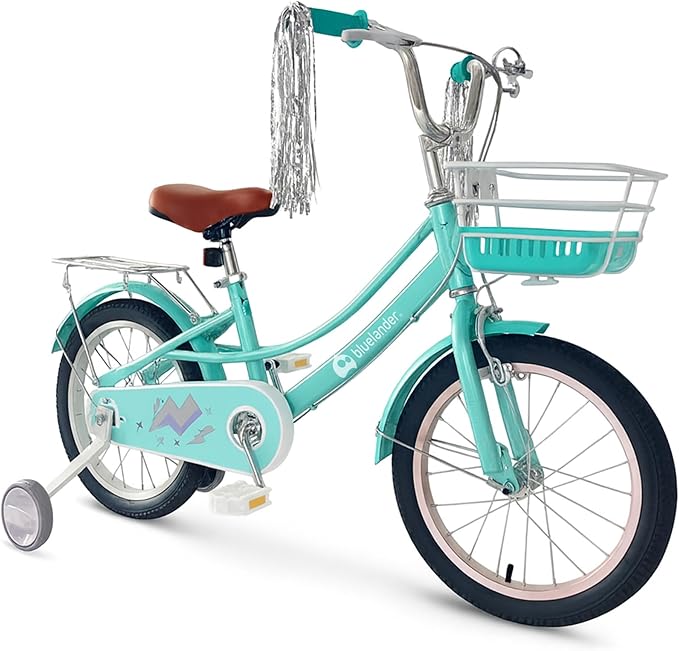 Bluelander Bicicleta Infantil para Niña, Rodada 16 con Ruedas de Entrenamiento, Canastilla, Parrilla Metalica y…