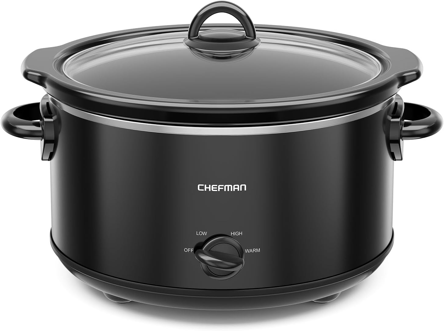 Chefman Olla de Cocción Lenta 4.7 L – Control de Temperatura, Tapa Apta para Lavavajillas, Color Negro