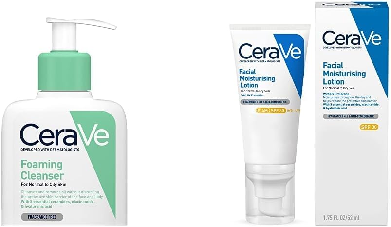 Hace un momento vi que Amazon está ofreciendo el combo CeraVe con limpiador facial espumoso + loción facial hidratante con protector solar a un precio muy bueno; por lo que los puedes adquirir a un excelente precio.