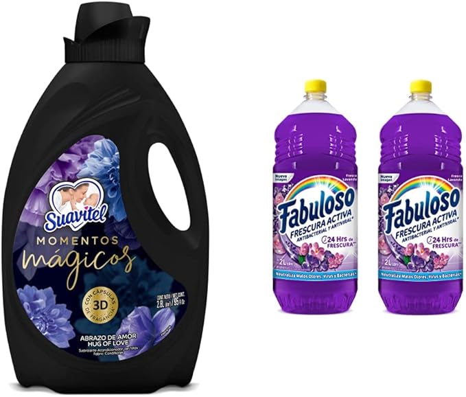 Les cuento que Amazon está ofreciendo ahorita el combo con Suavitel Momentos Mágicos 2.8 L + 2 pack limpiador multiusos Fabuloso Lavanda de 2 L a un excelente precio, bajó de precio y ya los pueden comprar con un gran descuento.