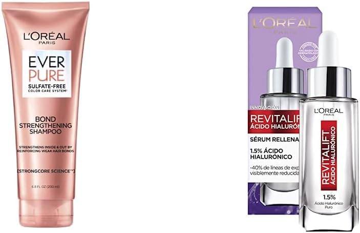 Combo Loréal Paris con shampoo Ever Pure Bond para alaciado + sérum antiarrugas Revitalift ácido hialurónico