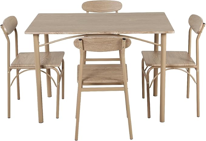 Kingshouse | Comedor con 4 Sillas – Mesa de Madera MDF para 4 Personas – Estructura metálica – Moderna – Juego de…