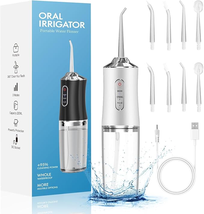 COSLUS Irrigador Bucal Portátil para Los Dientes: 4 Modos Irrigador Dental para Brackets y Encías Sensibles con 4...
