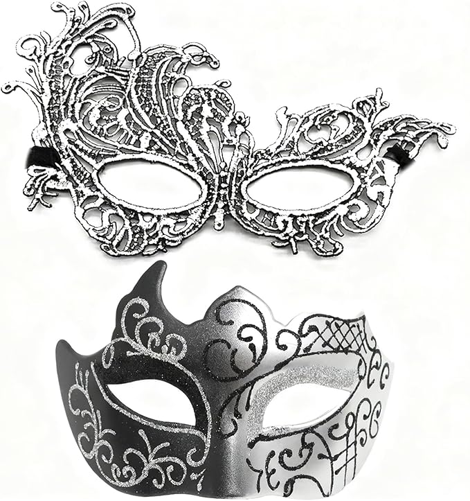 JAFEN Conjunto de Antifaz Fiesta - Mascara Veneciana Hombre y Mujer para Parejas, Disfraz de Halloween, Accesorios para...
