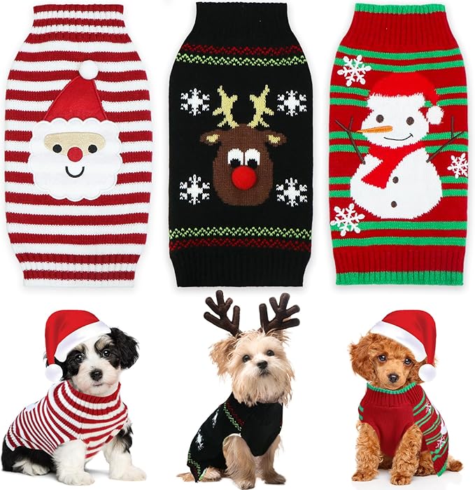 GOYOSWA - Paquete de 3 suéteres de Navidad para perro, suéter de Navidad para perro, suéter de Papá Noel, muñeco de...
