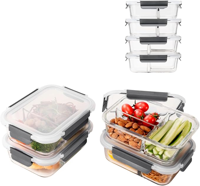 Juego de 4 Recipientes herméticos de vidrio con divisiones de nuevo bajan de precio
