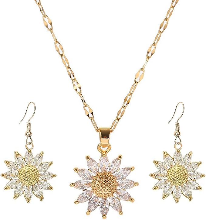 Collares de Mujer, Juego Collar Aretes de Girasol Chapado Oro 14K de Mujer con Regalo Cadena 45cm Longitud,Romántico…
