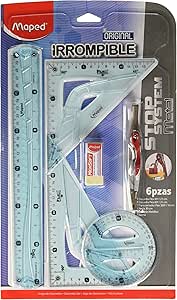 Maped – Juego de Geometria Irrompible, regla 30cm, escuadras 21cm, transportador 180° de 12cm, compás de metal, 1 goma de…