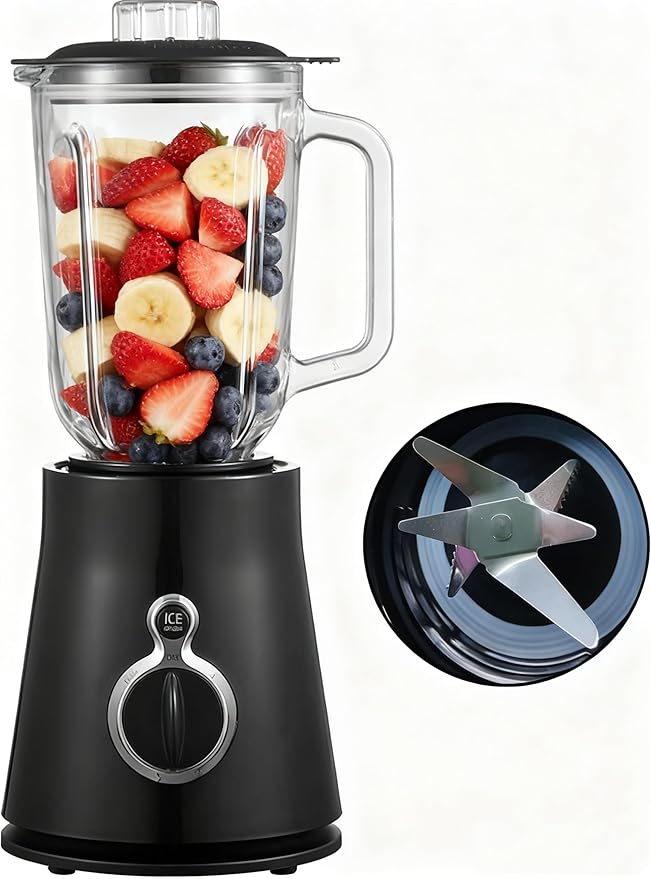 Fandbo Licuadora de Mesa Alto Rendimiento 600W con 6 Cuchillas de Acero Inoxidable y Jarra de cristal de 1.5L Ideal, Tres…