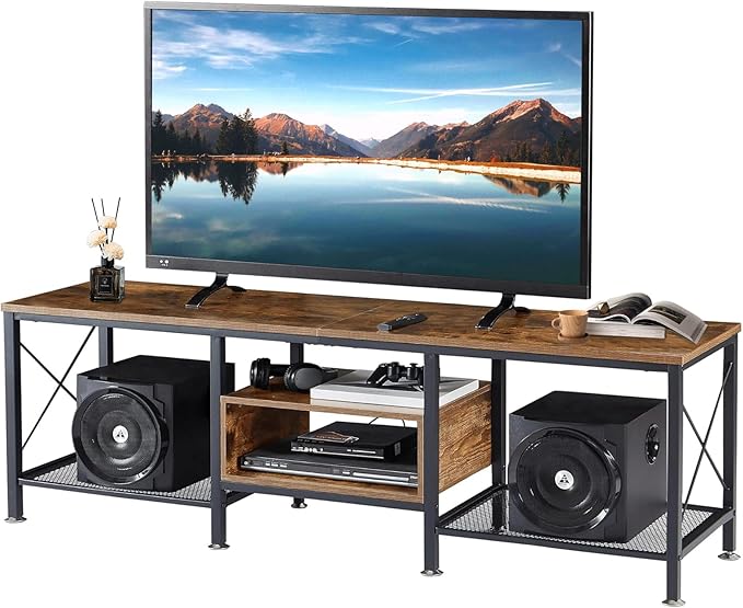 UTILIA Mueble para TV con Cajones y Estantes Abiertos – Centro de Entretenimiento Industrial, Soporte para TV de 65, 70 y…