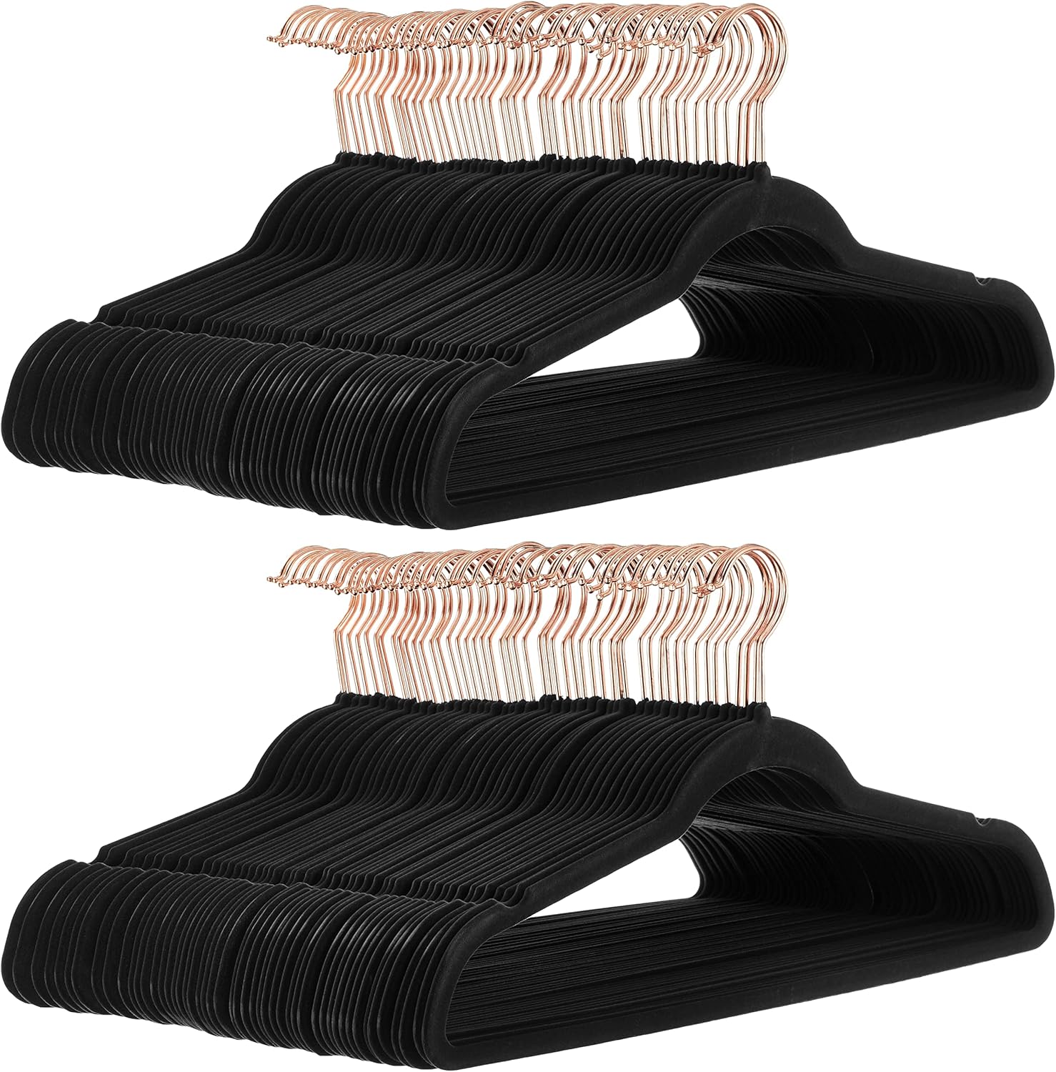 Amazon Basics – Ganchos delgados de terciopelo, antideslizantes, color Negro/Dorado, Paquete de 50