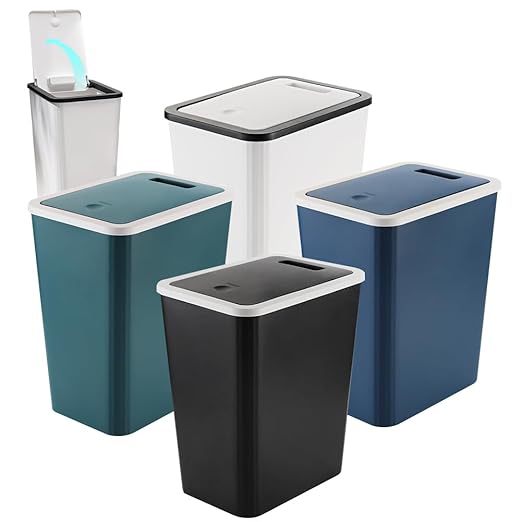 OUARTV Juego de 3 Botes de Basura Para Baño con Tapa,2 Pack de 15L/3.96 Gal de Bote de Basura y 1 Pack de 10L/2.64 Gal…