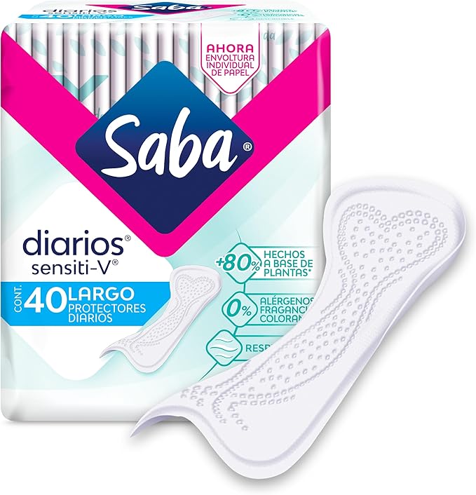 Acabo de darme cuenta que los Protectores diarios Saba Sensiti-V con 40 piezas, bajaron a un super precio y loe encontrarás en Amazon a mitad de precio.