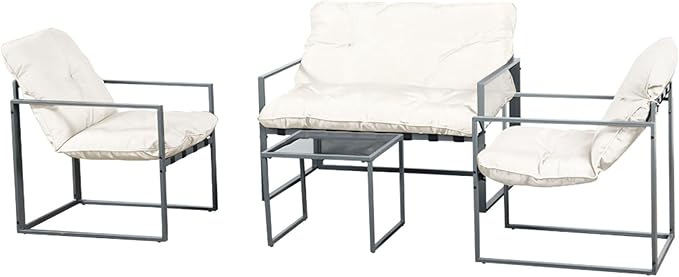 LUMO HOME Juego Sala para Jardín 4 Piezas para Exterior | Elegante Mesa de jardín con sillas | Set Jardin para Exteriores…