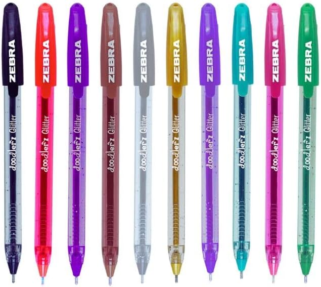 Zebra Pen Doodlerz Bolígrafo de gel, punta atrevida de 1 mm, varios colores con purpurina, 10 unidades