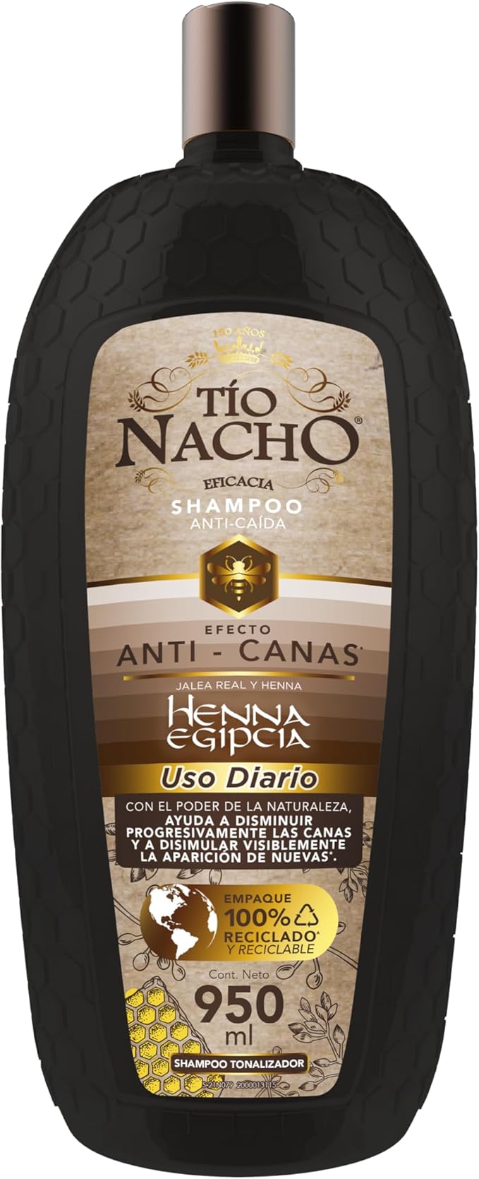 Tio Nacho Shampoo Anti-Canas y Anti-Caída, Tonalizador con Jalea Real y Henna Vegetal Egipcia, Promueve el Crecimiento del...