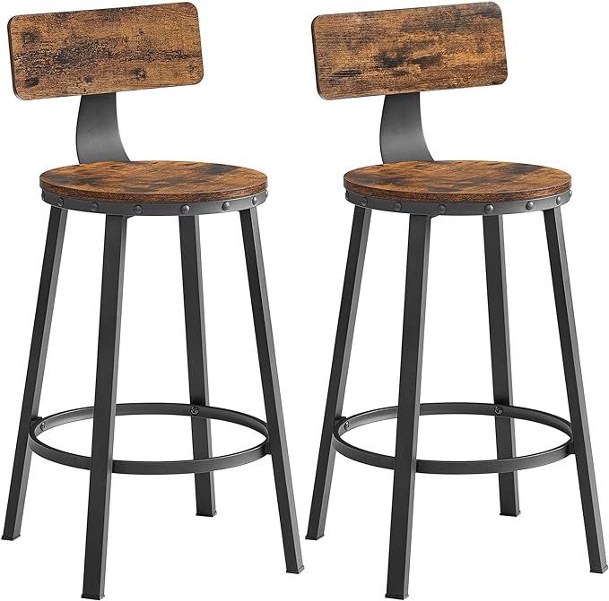 VASAGLE Taburetes de Bar, Juego de 2 Taburetes de Barra, Tapizados de PU, Altura de 75,5 cm, Reposapiés, Montaje Simple,…