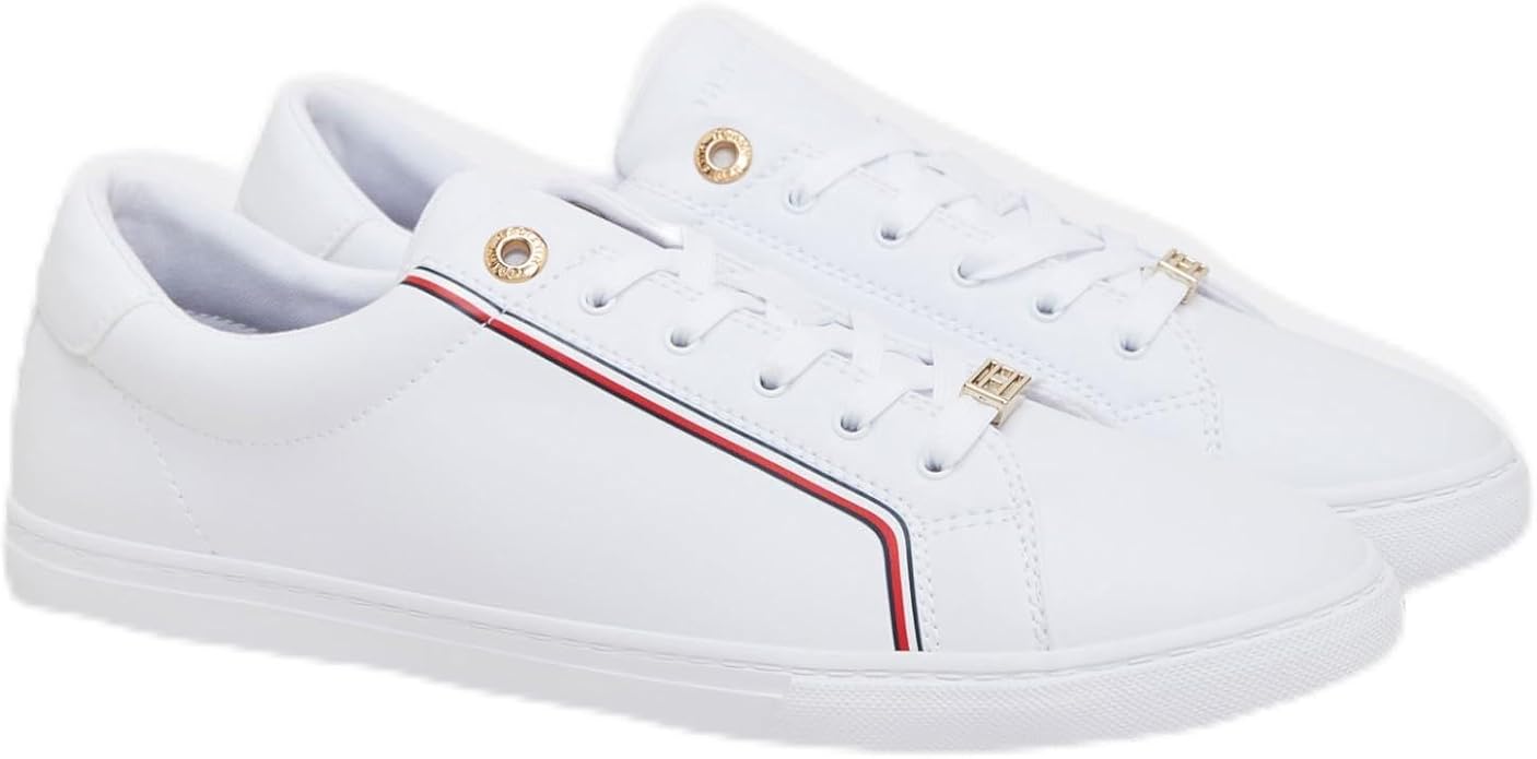 Tommy Hilfiger – Zapatillas de Almuerzo para Mujer, Blanco/Dorado, 8 M US