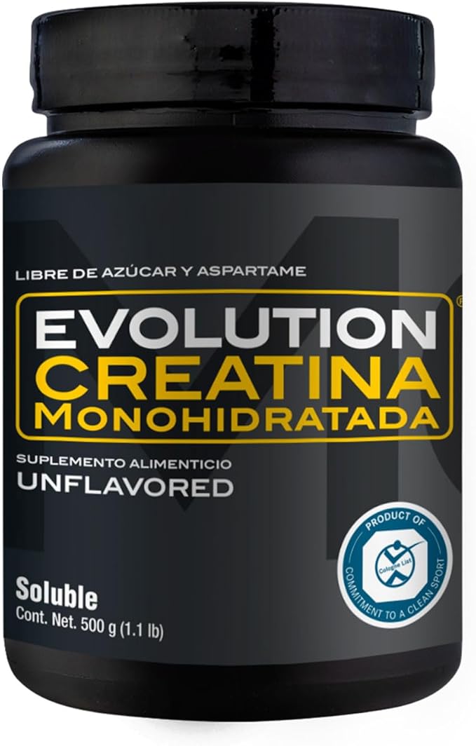EVOLUTION, Creatina Monohidratada, Suplemento Alimenticio, 100 Porciones, 500g, Sin Gluten, Sugar Free, Pre Workout, Sin...
