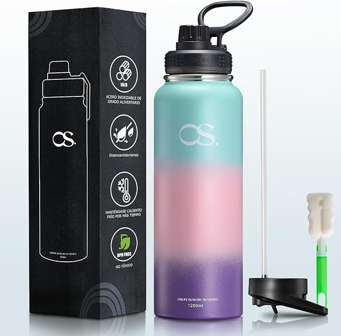 MOYAC Vaso Térmico 40 oz con Pajita Plegables, Termo al Vacío de Acero Inoxidable con Asa y Tapa, Termo Infusor de Vacío...