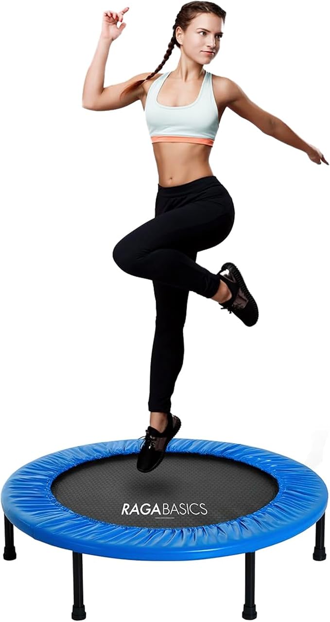 Raganet, Trampolin para Acondicionamiento Fisico de 93cm, Brincolin Plegable de Fitness con Base de 6 Patas y 24 Resortes,...
