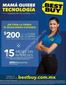 Les comparto esta nueva promoción de Best Buy. Están dando $200 en cupones por cada $2,000 de compra o 15 meses sin intereses al pagar con tarjetas de crédito BBVA Bancomer. Los meses sin intereses aplican en artículos y marcas participantes. La promoción es valida al comprar en tiendas físicas o en la tienda online. Estará vigente del 12 al 25 de abril, y el último día para canjear los cupones es el 29 de abril del 2018.