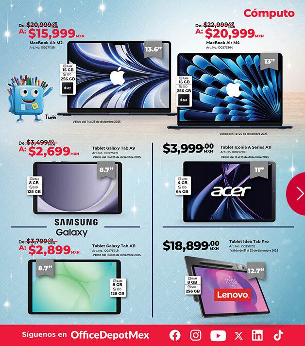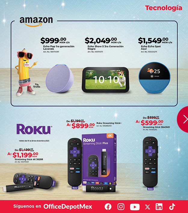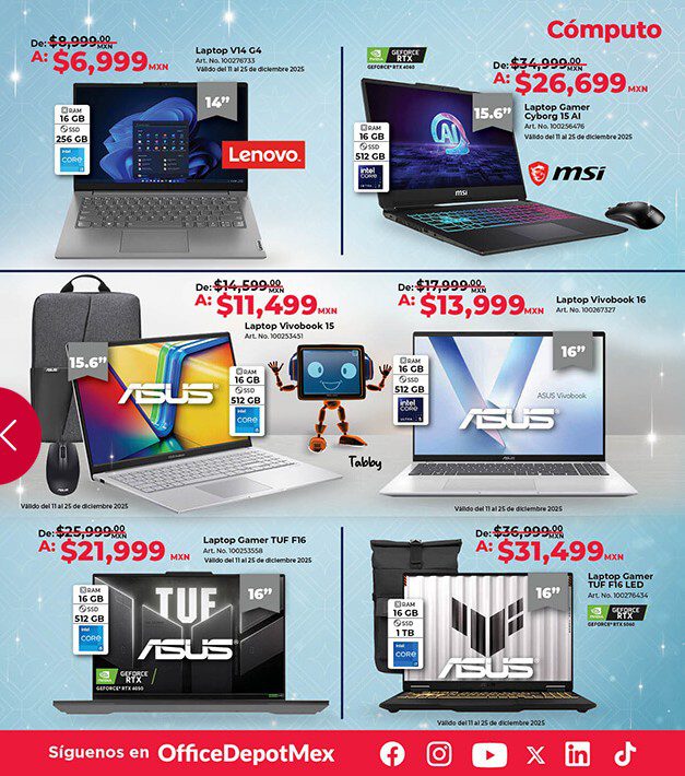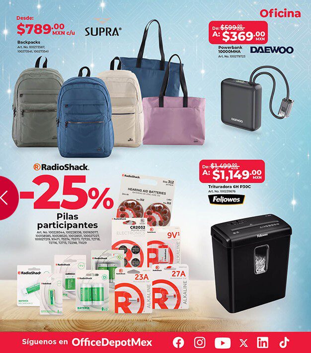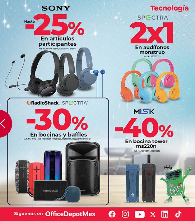 Hace unos minutos vi el folleto 30 Años Haciendo Magia Contigo de Office Depot, en el que encontrarás un 2×1, hasta un 50% de descuento, Ahorros especiales en la compra de determinadas unidades, Precios especiales y hasta 6 Meses sin intereses si pagas con tarjetas participantes; las ofertas son válidas en productos seleccionados, cuenta con una vigencia del 01 al 31 de diciembre de 2025 y aplican tanto en su tienda en línea officedepot.com.mx, como en su App (que puedes descargar desde esa misma página) y en sus sucursales físicas.