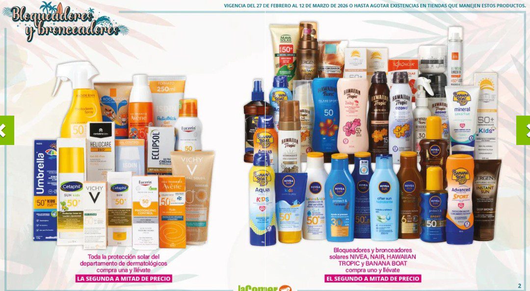 Te comparto el folleto de Vacaciones de La Comer y Fresko, que contiene sus ofertas válidas del 27 de febrero al 12 de marzo de 2026 o hasta agotar existencias y en el que encontrarás que, en la compra de 1 te llevas el Segundo a Mitad de precio, Bonificaciones en tu Monedero Naranja en la compra de determinados importes, Descuentos especiales en la compra de determinadas cantidades y Precios especiales en productos seleccionados; las ofertas son válidas en su tienda en línea: www.lacomer.com.mx y en sus sucursales físicas y este es su folleto: