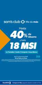 Les aviso que hasta hoy lunes 30 de marzo de 2026, en los clubes de precios Sam’s Club estará su Venta Única, con la que están ofreciendo hasta un 40% de descuento + hasta 18 meses sin intereses si pagas con tarjetas de crédito participantes: Sam’s Club Invex, Walmart Invex, BBVA, Banamex, Santander, HSBC, Banorte, Scotiabank, Afirme, Invex o American Express; la promoción aplica en productos seleccionados de Pantallas, Audio, Cómputo y Línea blanca, es válida en su tienda en línea sams.com.mx y en sus Clubes físicos.