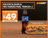 1 Sub de Pollo Estilo Teriyaki de 15 cm + 1 bebida embotellada de 600 ml = $49.00 Normalmente sólo el Sub cuesta $74.00. Aplica sólo en órdenes para llevar; ...