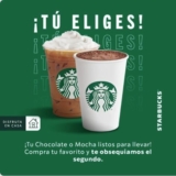 Hace un momento me percaté que Starbucks tiene una promoción en la que te están ofreciendo un 2x1 en Mocha o Chocolate participante de tamaño grande 400 ml o ...