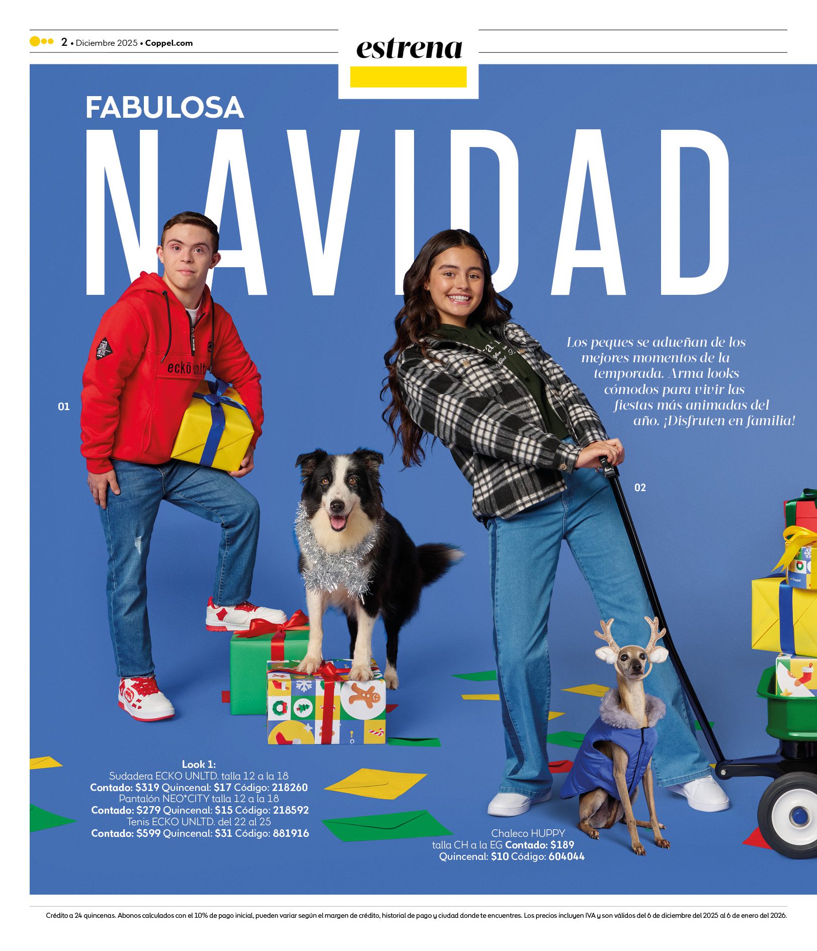 Te comparto el folleto de Navidad: Encuentra todo para el Intercambio que Coppel publicó, en el que encontrarás los productos que están promocionando, sus Precios de Contado y Quincenales; las ofertas son válidas en artículos y departamentos participantes, estarán vigentes del 06 de diciembre 2025 al 6 de enero 2026 o hasta agotar existencias y aplican en su tienda en línea coppel.com y en sus sucursales físicas.