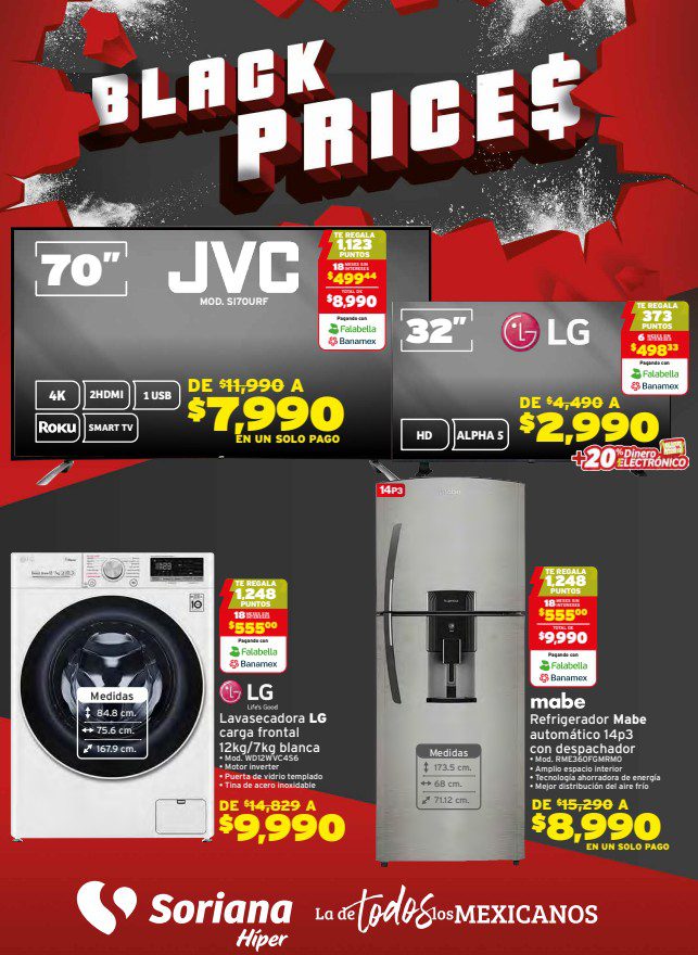 Ya salió el folleto catorcenal Black Prices de Soriana Híper, que contiene sus ofertas válidas del 21 al 26 de noviembre de 2025 o agotar existencias, y en el que encontrarás3×2 (el producto GRATIS será el de igual o menor precio), hasta un 50% de descuento, Precios especiales y hasta 18 Meses sin intereses; las ofertas son válidas en artículos seleccionados y aplican en su tienda en línea soriana.com y en sus sucursales físicas participantes.