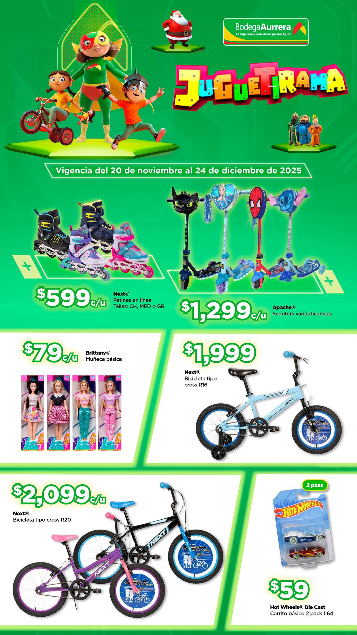 Hace un momento me percaté que Bodega Aurrera publicó su folleto Juguetirama, que contiene sus ofertas válidas del 20 de noviembre al 24 de diciembre de 2025 en el que encontrarás Precios especiales, hasta 12 Meses sin intereses con tarjetas participantes, puedes realizar tu compra y comenzar a pagar en Febrero de 2026 con tarjetas participantes y puedes Apartar desde $50.00 tus productos de Juguetería, Electrónica, Línea blanca, Colchones y Autos, las ofertas son válidas en su tienda en línea bodegaaurrera.com.mx y en sus sucursales físicas. Éste es su folleto: