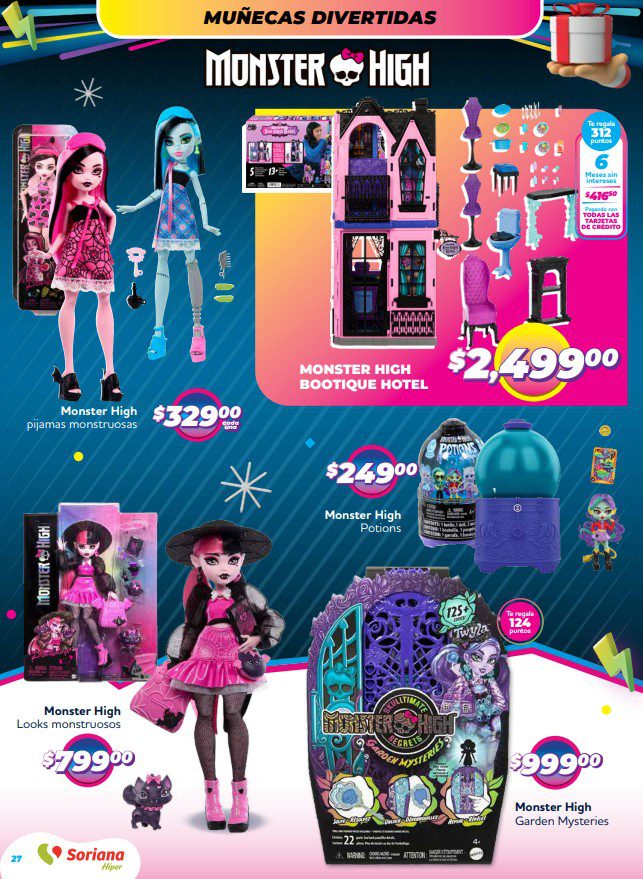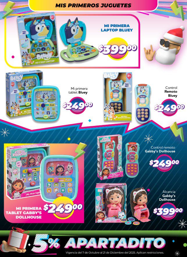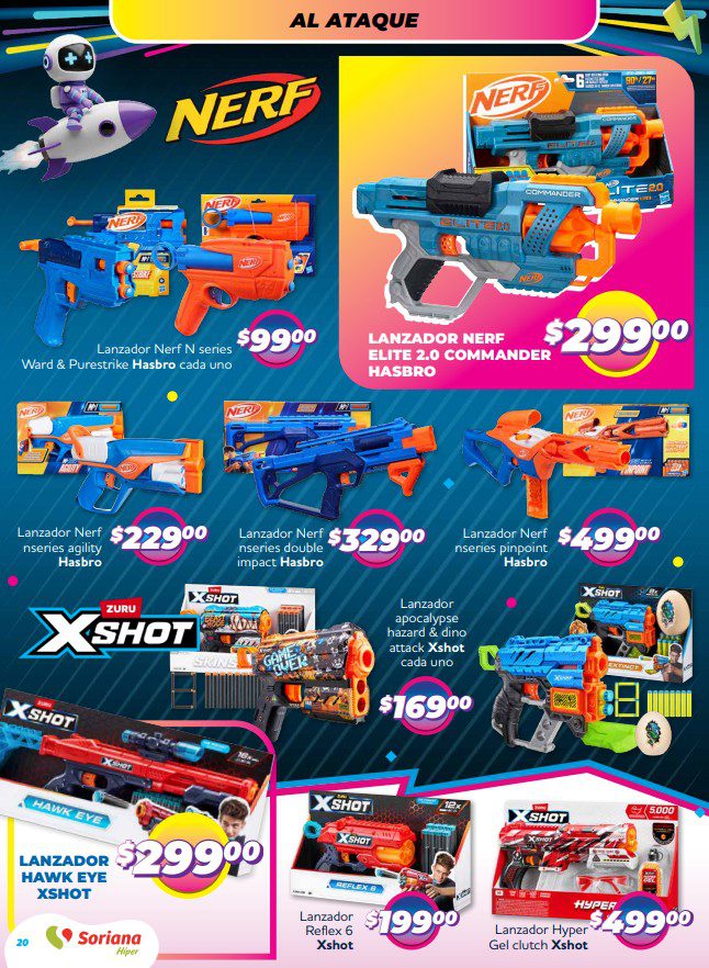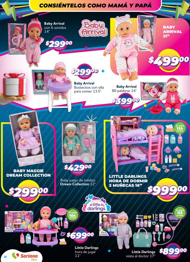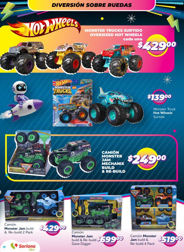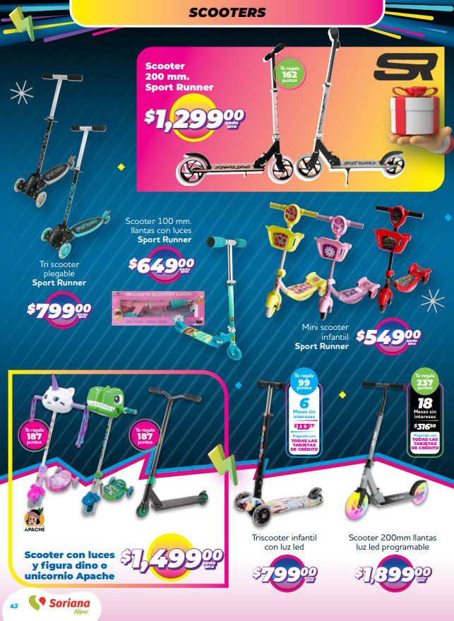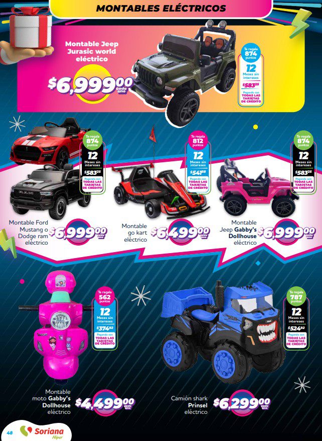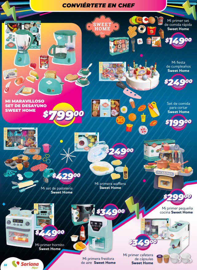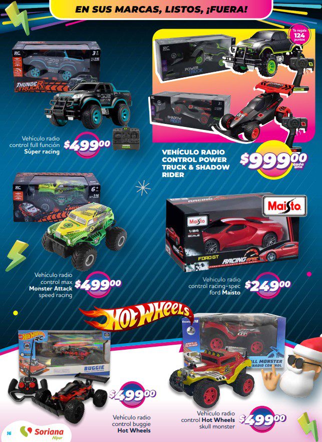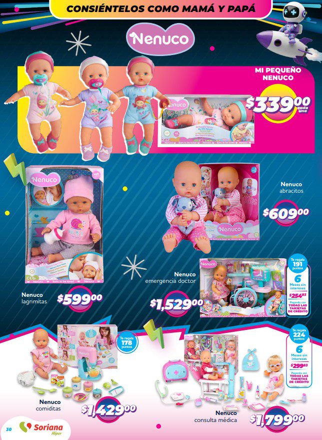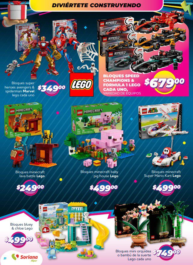 Hace un momento vi el folleto Reino de los Juguetes de Soriana Híper y Súper, que contiene sus ofertas válidas del 27 de noviembre al 11 de diciembre de 2025 o agotar existencias, y en el que encontrarás Precios especiales, hasta 18 Meses sin intereses con tarjetas participantes y Apartadito (puedes apartarlos con un 5% de su valor); las ofertas son válidas en artículos seleccionados y aplican en sus sucursales físicas y en su página web www.soriana.com.