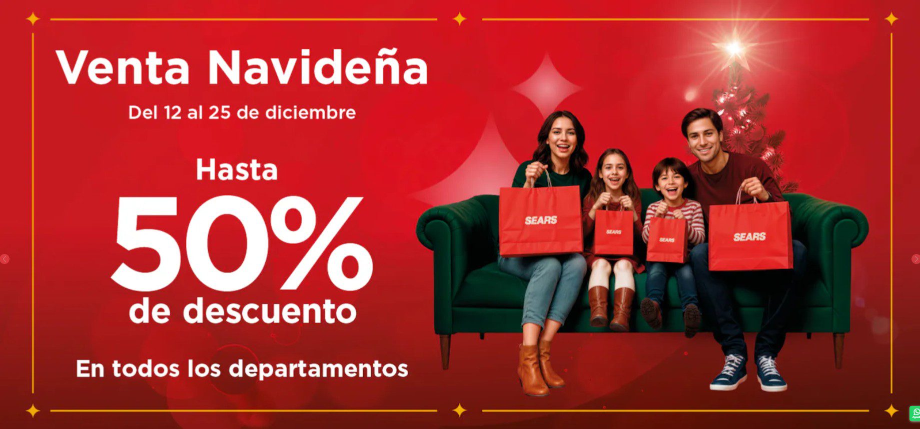 Ya está aquí la Venta Navideña 2025 de las tiendas departamentales Sears, en las que encontrarás hasta un 50% de descuento; las ofertas aplican en mercancía seleccionada, son válidas en su tienda en línea sears.com.mx y en sus sucursales físicas y estarán vigentes del 12 al 25 de diciembre de 2025.