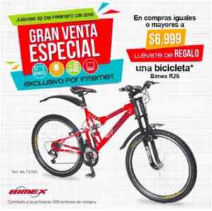 -Gratis una bicicleta Bimex R26 en compras mayores a $6,999