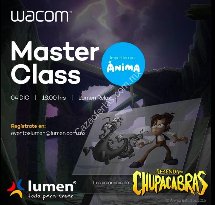 Nuevamente hay Master Class Wacom en Lumen Relox. La clase de esta ocasión será impartida por Ánima, los creadores de la película «La Leyenda del Chupacabras». La cita es este martes 4 de diciembre a partir de las 18:00 horas. Dado que el cupo es limitado, necesitan registrarse enviando un correo a esta dirección: eventoslumen@lumen.com.mx. La clase es GRATIS