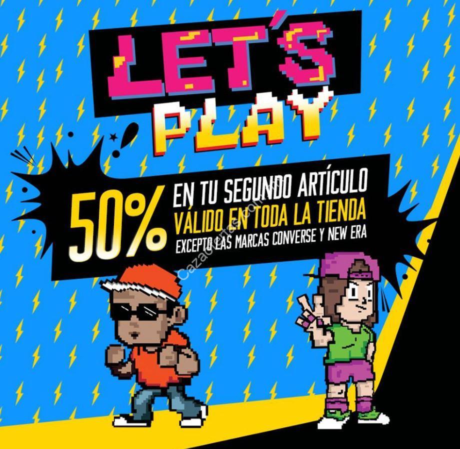 En las tiendas Dpstreet acaban de sacar la nueva promo de «Let’s Play» en la que les dan el segundo artículo que lleven a mitad de precio. El descuento aplica para el producto de menor precio. Promoción válida en toda la tienda excepto en las marcas Converse y New Era.