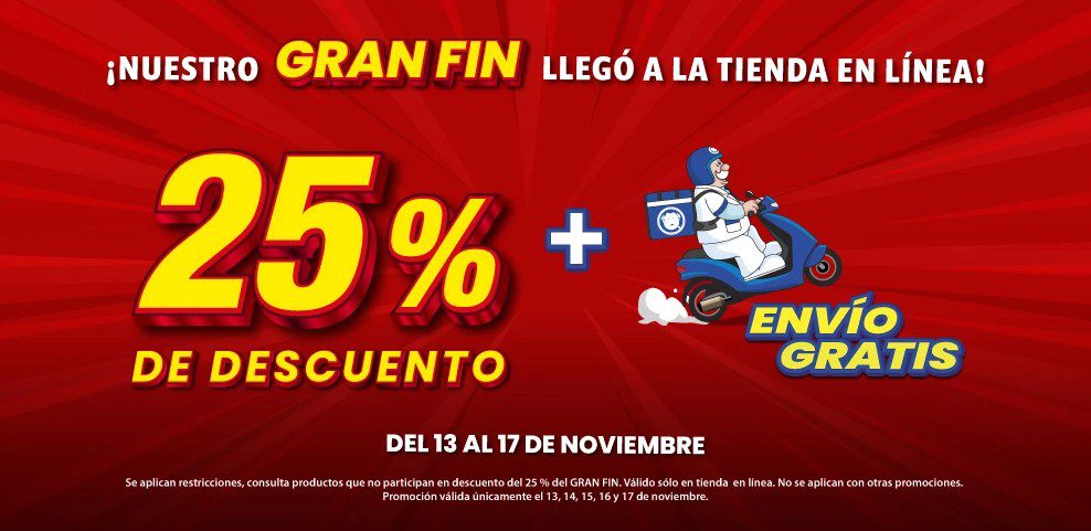 Te comparto la promoción del Buen Fin 2025 de las Farmacias Similares; en la que te están ofreciendo un 25% de descuento + Envíos Gratis; la promoción estará vigente del 13 al 17 de noviembre de 2025, aplica en productos participantes y es válida solo en su tienda en línea: www.farmaciasdesimilares.com/.