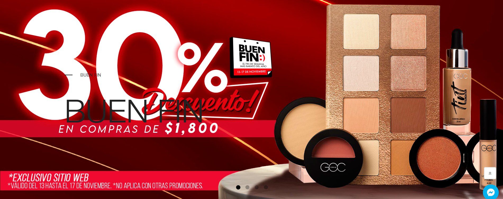Hace unos minutos me percaté que la tienda de productos de belleza GOC Make Up dio a conocer su promoción del Buen Fin 2025, en la que te darán un 30% de descuento en tus compras por un mínimo de $1,800.00; la promoción es exclusiva de su tienda en línea www.gocmakeup.com y cuenta con una vigencia del 13 al 17 de noviembre de 2025.