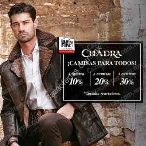 En las tiendas de productos de piel, ropa y accesorios Cuadra, ya publicaron que para este Buen Fin 2019, te darán hasta un 30% de descuento en Camisas (dependiendo del número de prendas) + 3 o 6 meses sin intereses si pagas con tarjetas participantes; la promoción será válida del 15 al 18 de noviembre de 2019.