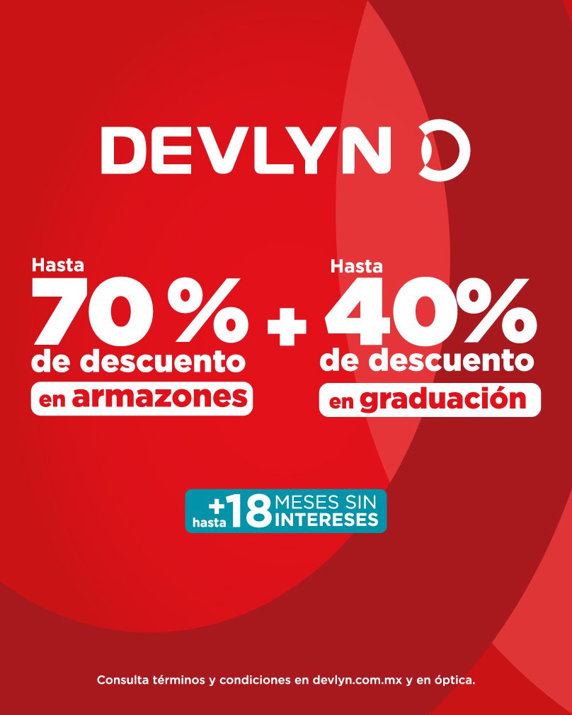 Las ópticas Devlyn anunciaron su promoción por el Buen Fin 2025, en la que podrás obtener hasta un 70% de descuento en Armazones + hasta un 40% de descuento en Graduación + hasta 18 Meses sin intereses; la promoción aplica en productos participantes, es válida en su sitio de Internet www.devlyn.com.mx/buen-fin-promociones-armazones y en sus sucursales físicas y estará vigente del 31 de octubre al 23 de noviembre de 2025.