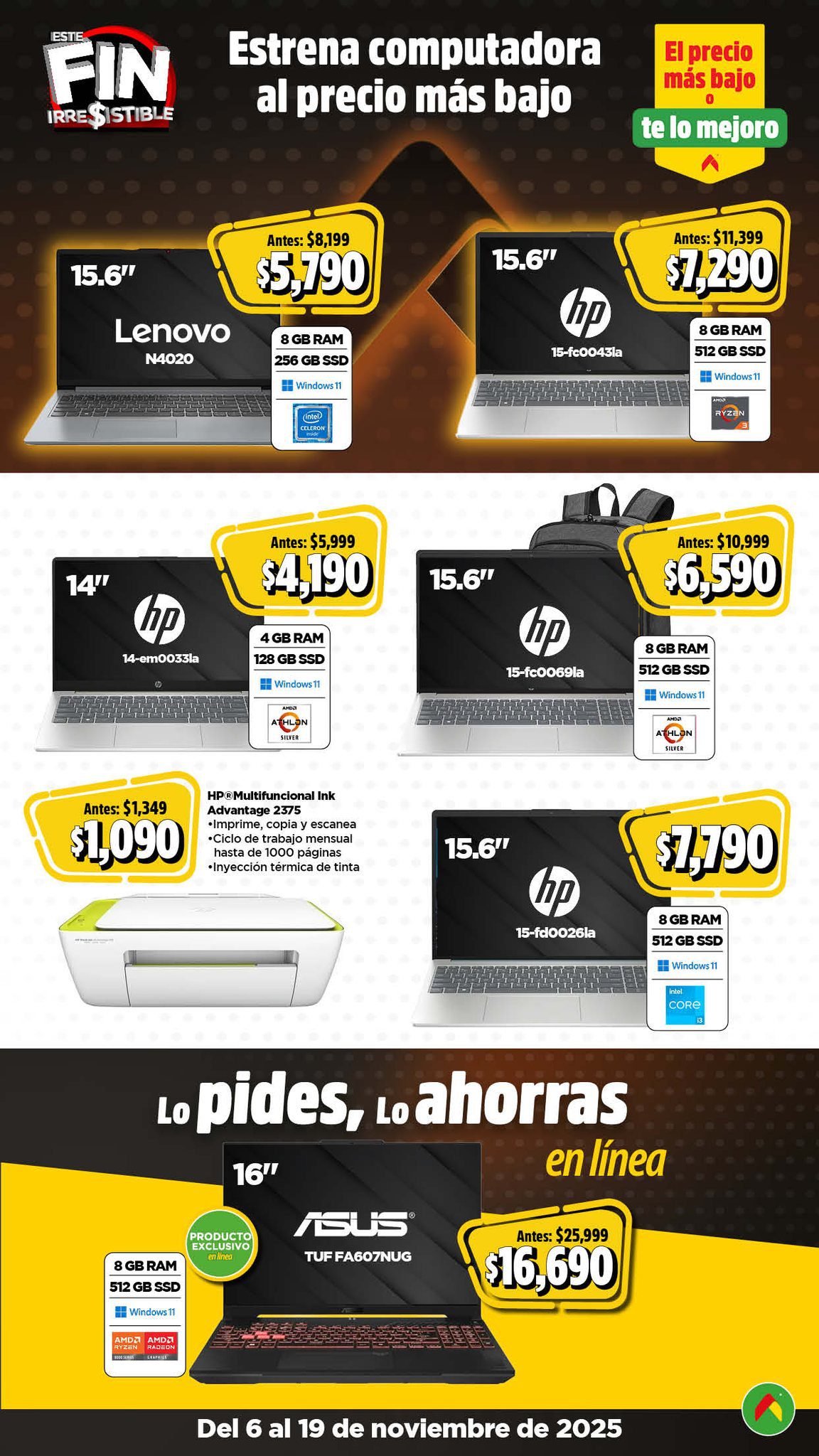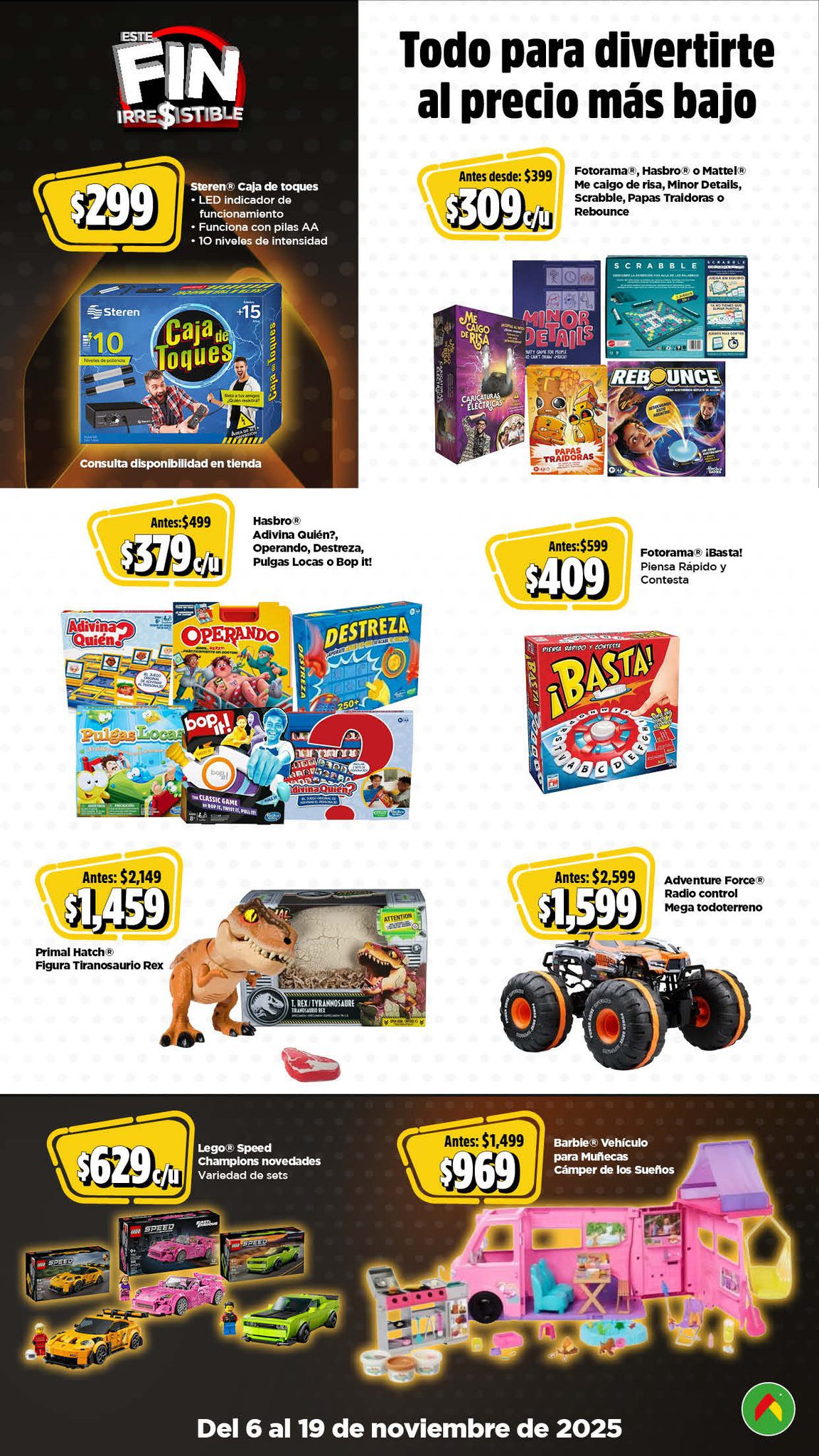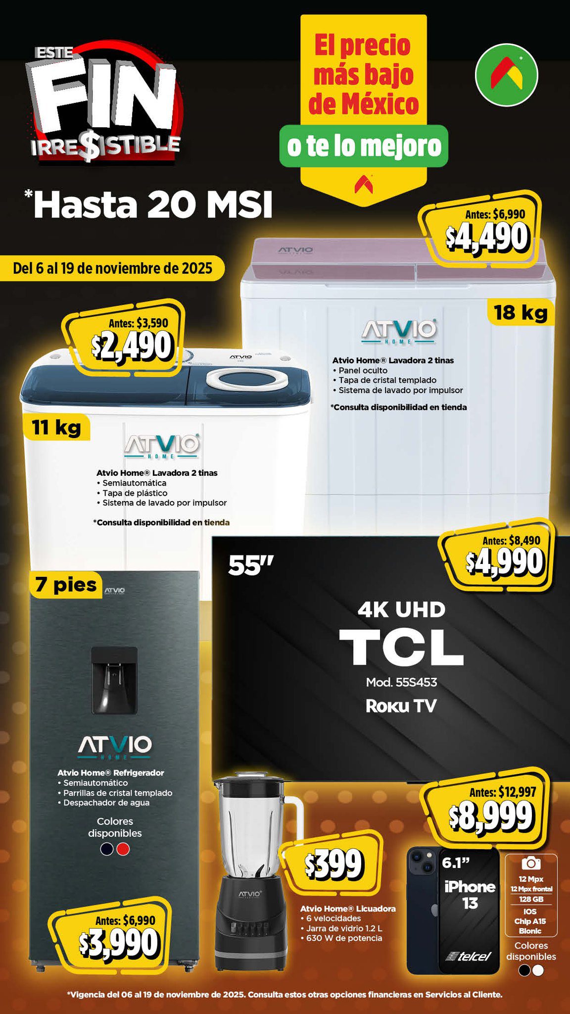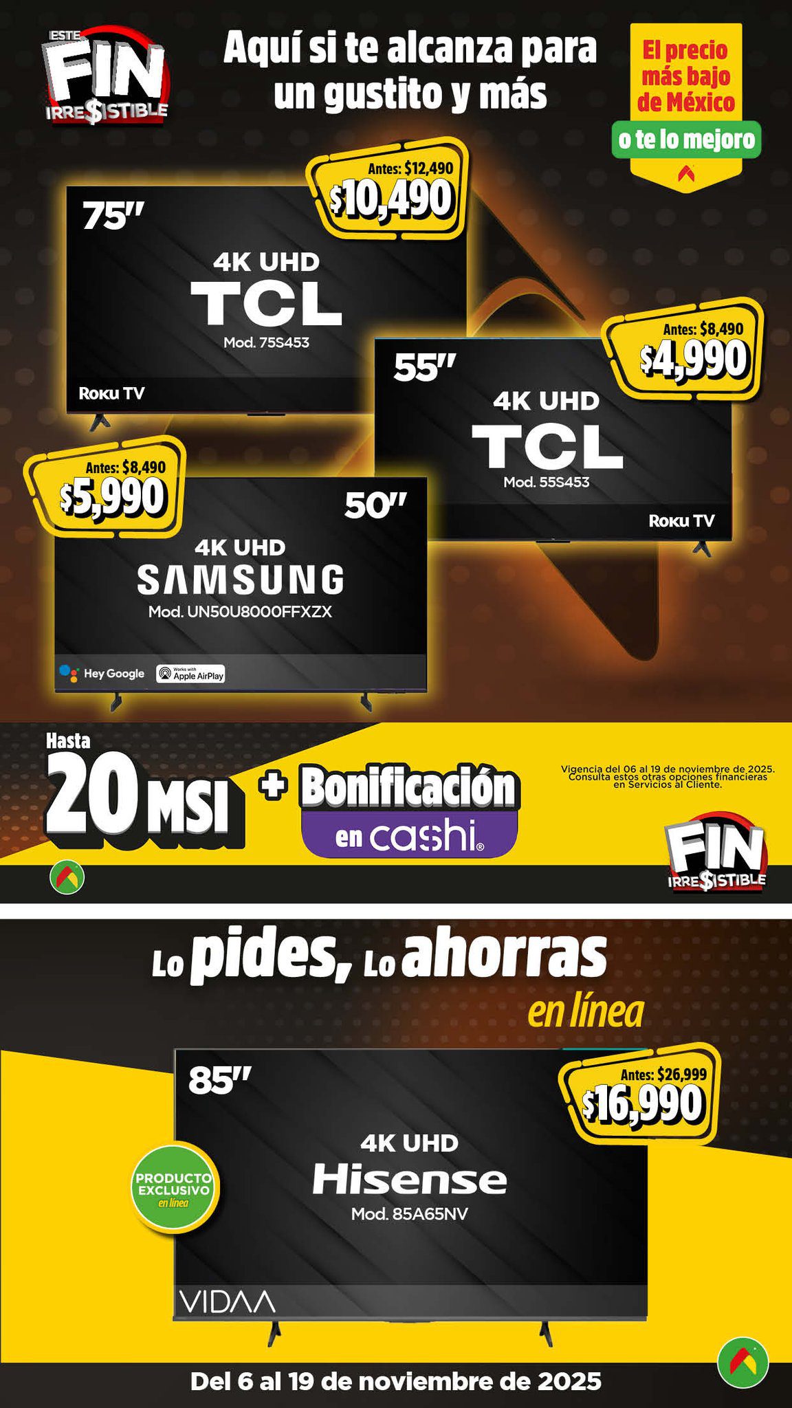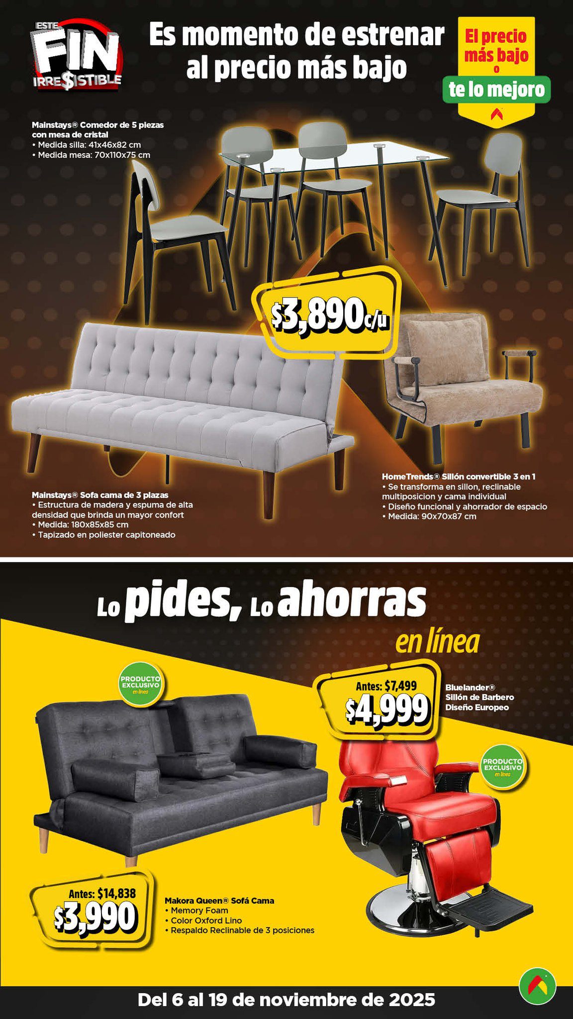 Acabo de ver el folleto Este Fin Irresistible 2025, el Precio más Bajo de México o te lo Mejoro de las tiendas de autoservicio Bodega Aurrera, que contiene sus ofertas válidas del 06 al 19 de noviembre de 2025 en el que encontrarás hasta un 40% de Ahorro + un 15% de descuento adicional en productos seleccionados, usando el cupón AHORRA15BA (exclusivo en línea), Precios especiales, hasta un 20% de Bonificación en Cashi, un 10% de Bonificación en Cashi si pagas con tu Programa o Beca del Bienestar y hasta 20 Meses sin intereses con tarjetas participantes; las ofertas son válidas en su tienda en línea www.bodegaaurrera.com.mx/inicio, en su App (que puedes descargar en estos enlaces: para Google Play o para App Store) y en sus sucursales físicas. Este es su folleto: