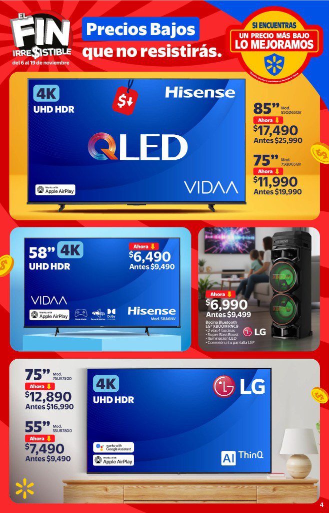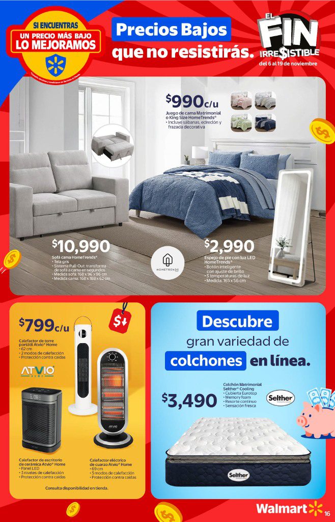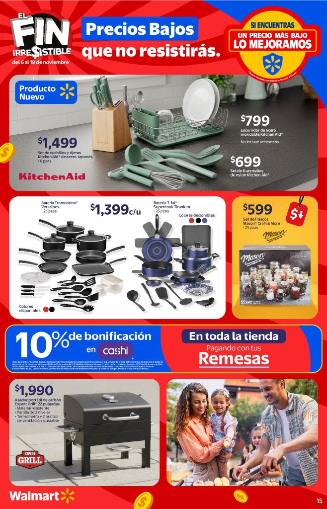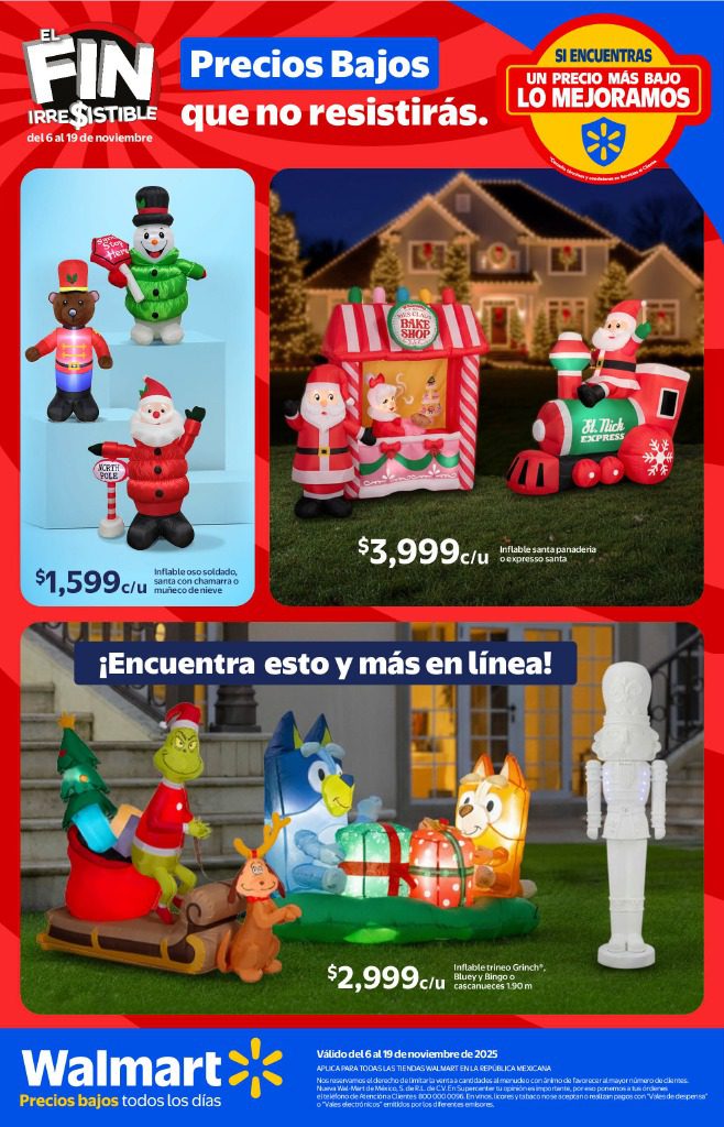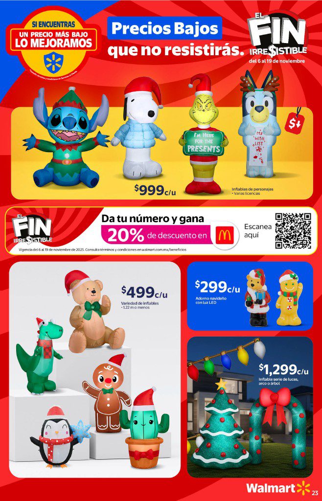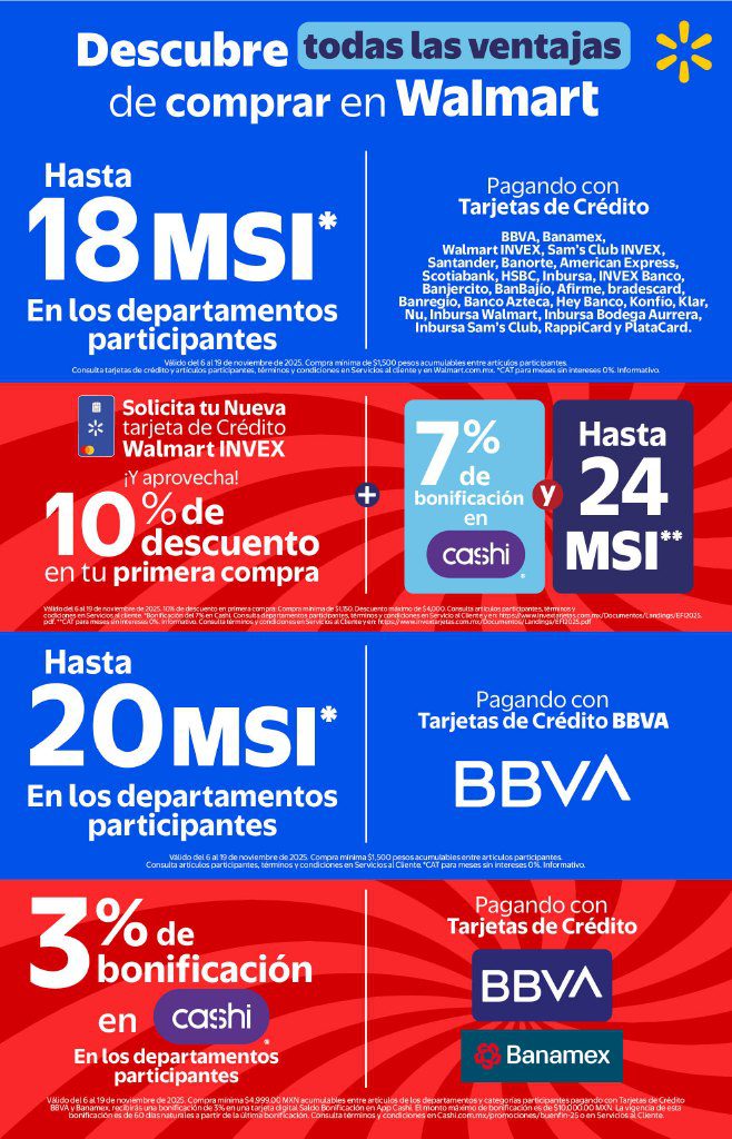 Las tiendas de autoservicio Walmart publicaron su folleto El Fin Irresistible 2025, Precios Bajos que no Resistirás, que contiene sus ofertas válidas del 06 al 19 de noviembre de 2025, en el que encontrarás un 15% de Bonificación en Ropa si pagas con Cashi, Combos, Precios especiales, hasta 20 Meses sin intereses con tarjetas participantes y puedes Apartar tus artículos con un 5% de su valor; las ofertas aplican en productos seleccionados, son válidas en sus sucursales físicas , en su página de Internet www.walmart.com.mx y en su App (que puedes descargar en estos enlaces: para Google Play o para App Store). Algunas ofertas son exclusivas de su sitio web. Aquí les dejo el folleto completo: